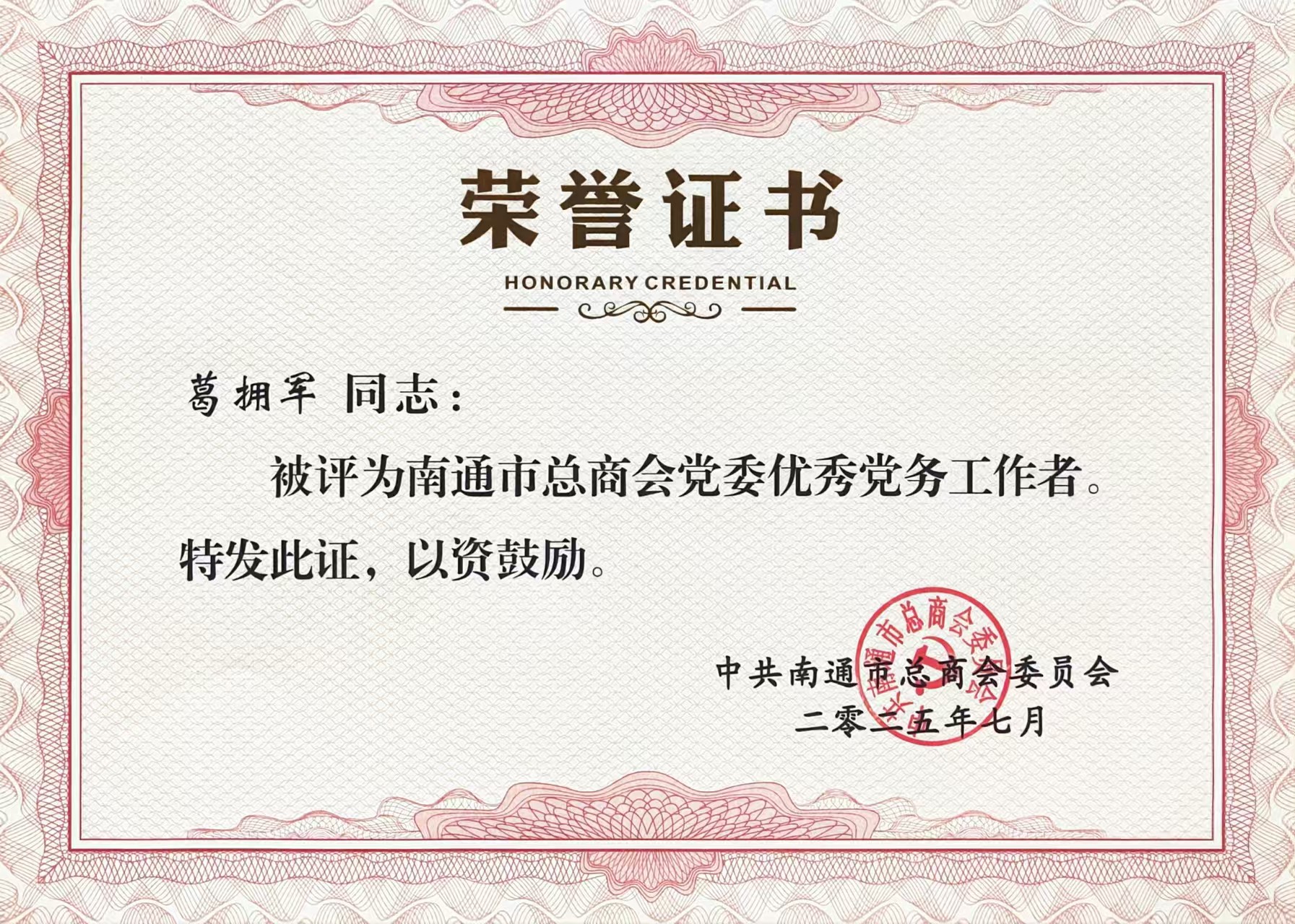 優秀黨務工作者葛擁軍